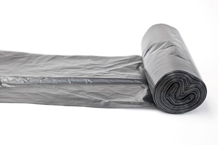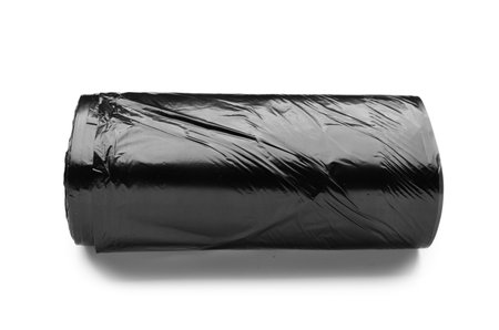 Black roll of garbage bags isolated on white background