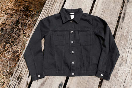 Vintage Leather black jacket on wood