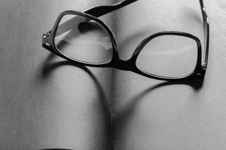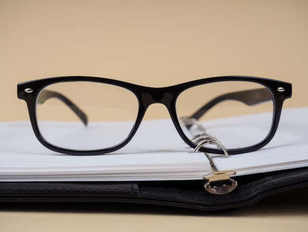 Blank black diary with eyeglasses