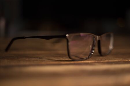 Glasses for sight and vision correction and protection from computer on the wooden table