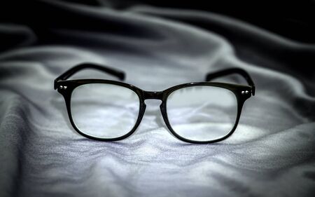 the reading eyeglasses on fabric background