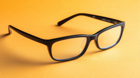 A stylish pair of black eyeglasses rests on a vivid orange background. This image captures the essence of modern eyewear design, perfect for marketing and promotional purposes.