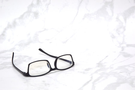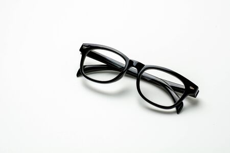 Classic style glasses on white texture background, eyewear fashion, reading glasses
