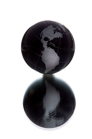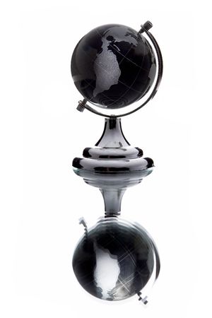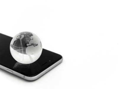 Glass crystal globe ball shine in dark background with black copy space internation global concept art