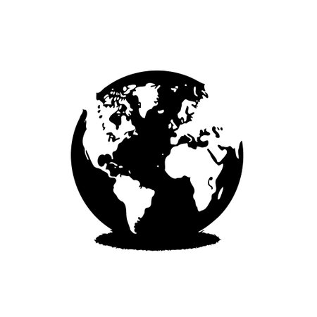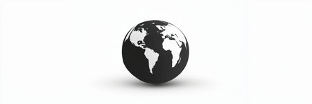 Simple black and white globe illustration suitable for travel agencies, global companies, and businesses needing a modern world image.