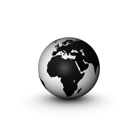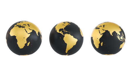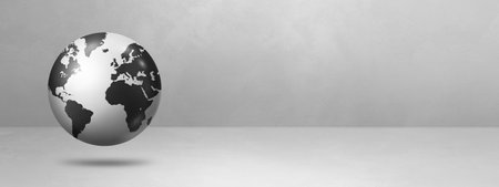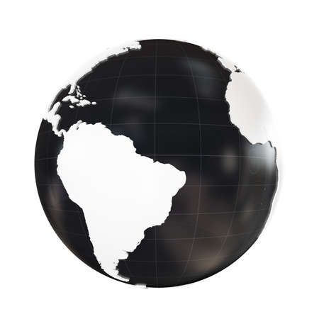 World globe, black earth map, floating over a white background. 3D isolated illustration. Banner template