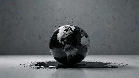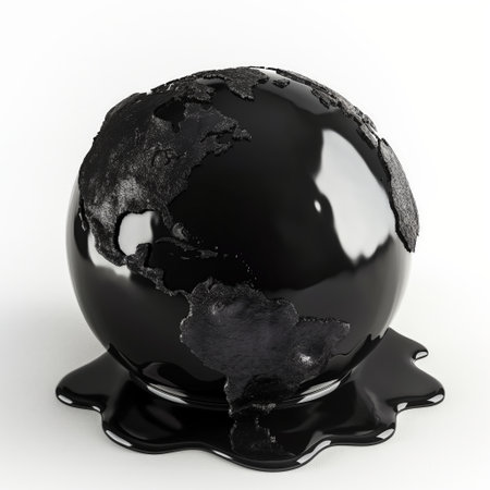 Artistic concept of a globe melting into oil, representing environmental issues.