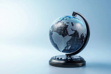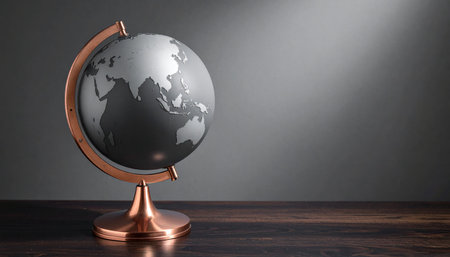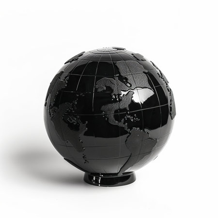 A detailed globe highlighting continents and oceans with a sleek design illuminated by soft light.