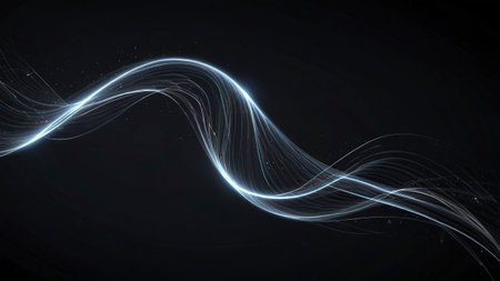 Smooth wavy spark streams create dynamic energy lines against a dark background