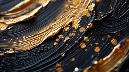Abstract black and gold texture. Swirls, strokes, and splatters of paint. Concept of art, design, and creativity.