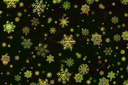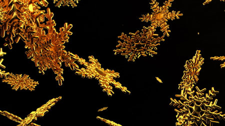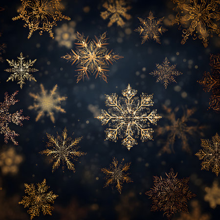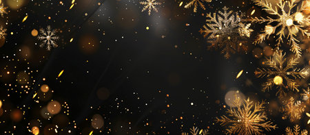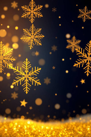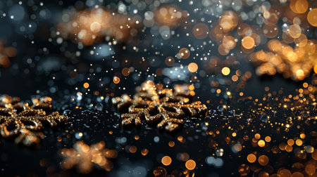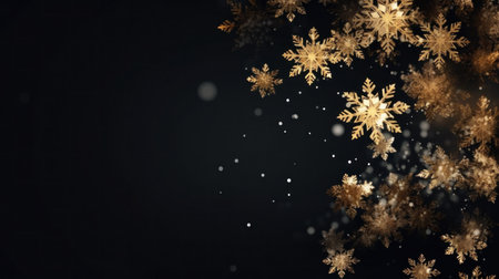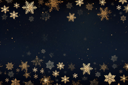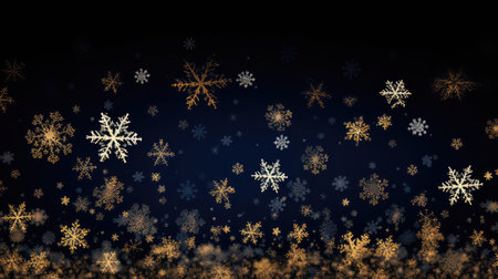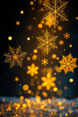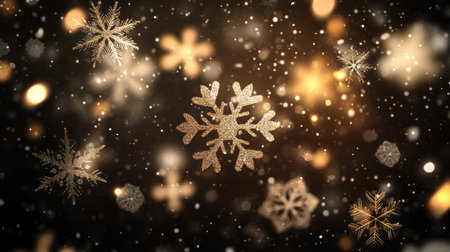 Golden snowflakes gracefully falling against a dark background, creating a festive atmosphere for winter celebrations