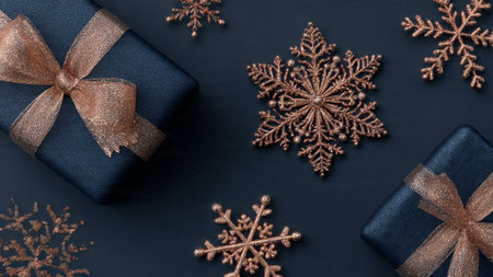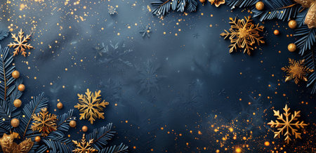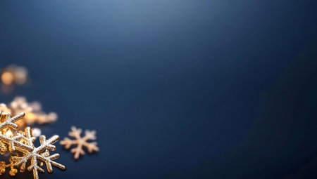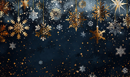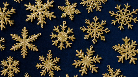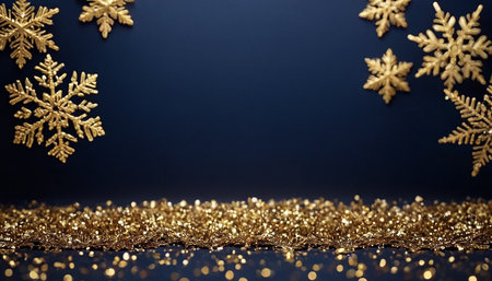 Elegant gold and navy snowflakes on winter background with a touch of luxury and sophistication