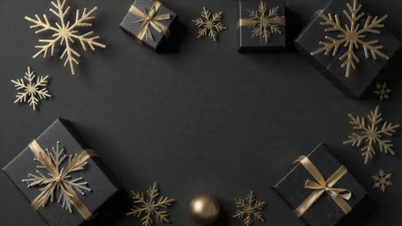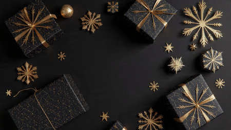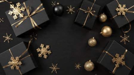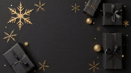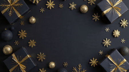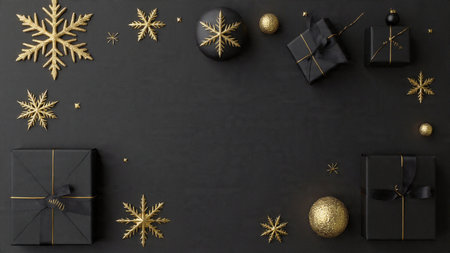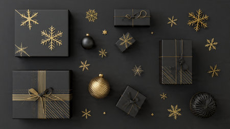 A modern holiday mockup featuring matte-black styling and shimmering pure-gold accents for a dramatic seasonal touch.