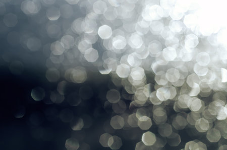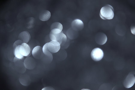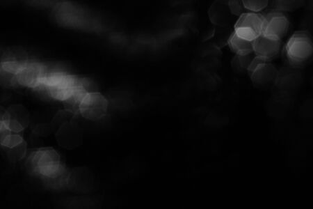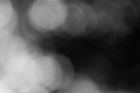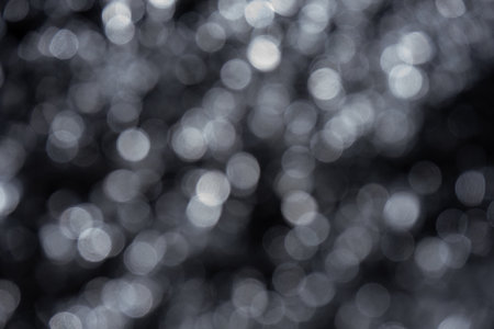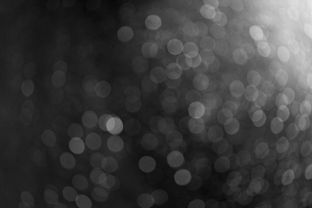 Black and white circles bokeh festive glitter dark background. Christmas lights bokeh overlay pattern. Modern abstract design.