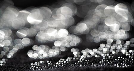 Blurred abstract monochrome glitter texture, defocused christmas lights. Holiday and christmas concept.