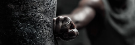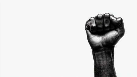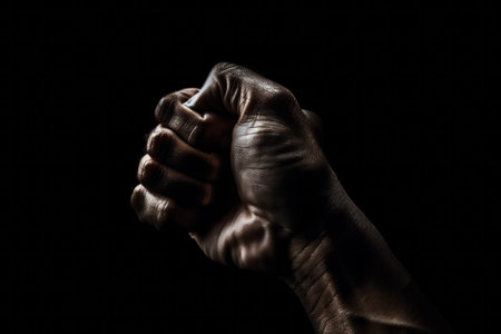 Closed Fist on a Black Background with Copy space, Symbol of Protest. ai generative.