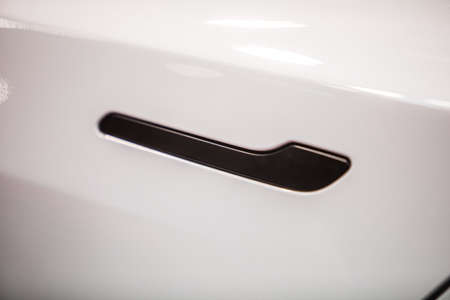 Modern door handle new car. Smart retractable door handles. Car exterior details. Close Up car door handle. Car equipment concept.