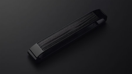 This image showcases a sleek black clip featuring a textured surface, perfect for conveying modern elegance in minimalist design. The dark background enhances its stylish and functional appeal, making it suitable for various creative projects.
