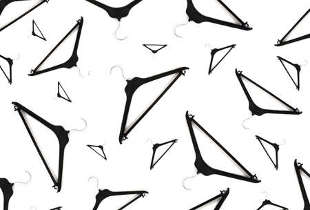 Clothes black Hangers Pattern On A White Background. Concept of discounts and promotions