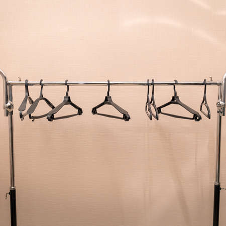Close up clothes hangers on rack. Background for fashion retail shop shop and apparel store.