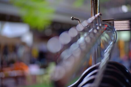 Close up of clothes hanger in a clothes store, shallow depth of field