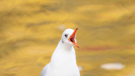 Portrait of a Seagull with orange Background in Autumn 2025