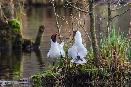 Black-headed gulls (Larus ridibundus) mating