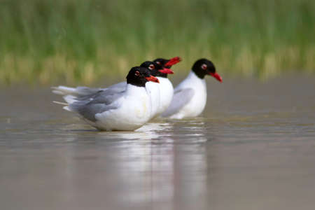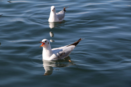 A beautiful black-headed gull on sea