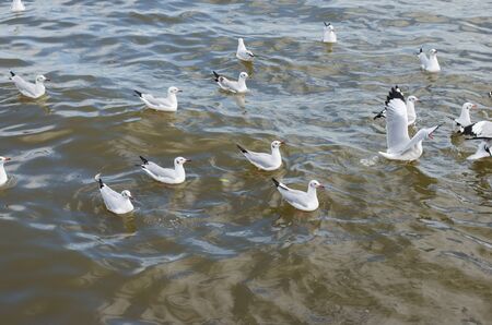 Brown-headed Gull on lake,Migratory seagulls flock to the Bang Pu Seaside, Thailand during November and April.