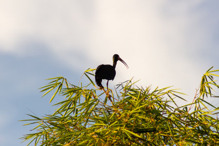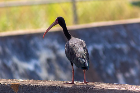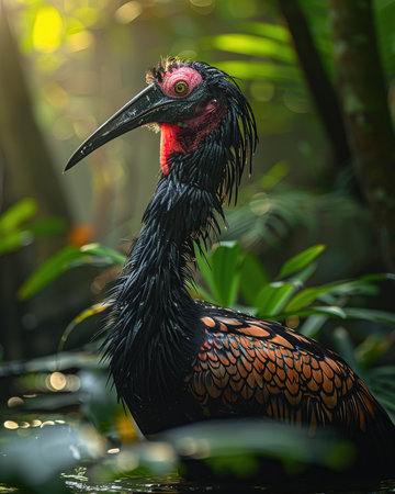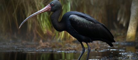 Elegant scarlet faced ibis in the golden hour splendor of serene marshland habitat