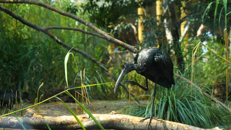 Portrait of a glossy Ibis (Plegadis falcinellus) basking in the sun, South Africa