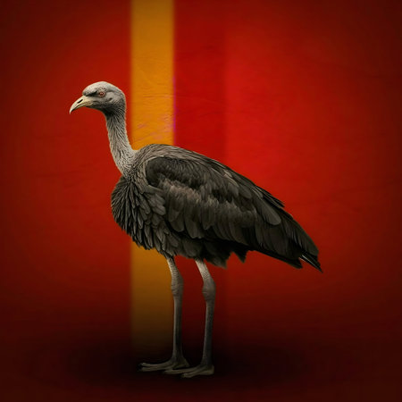 A captivating image of a serene gray bird against a bold red background. The bird's elegant posture and soft coloring create a visually striking contrast.