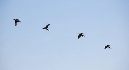 Animal Bare faced Ibis of the species Phimosus infuscatus in fly