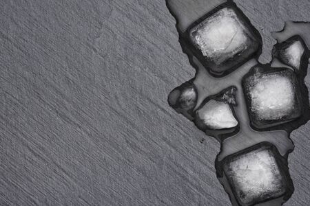 Ice cubes on dark background. Minimal abstract environmental protection and climate change concept. Global warming idea. Copy space.