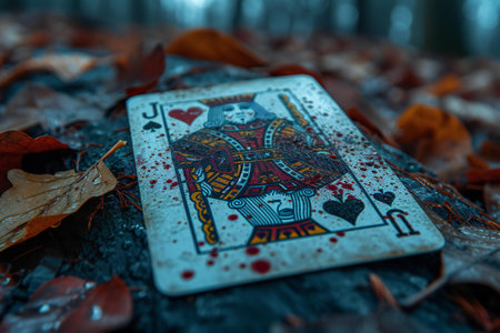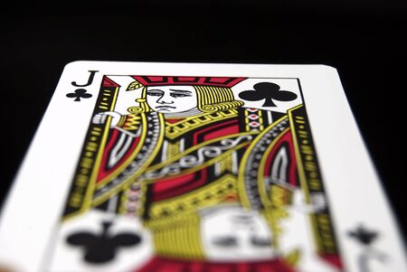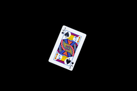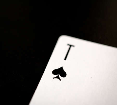 Brecht, Belgium - 29 May 2020: A portrait of the ace of spades standing up in the spotlight on a wooden table surrounded in darkness. There are no other playing cards of the deck in the picture.