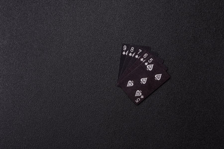 royal flush poker hands on a black background, playing cards, copyspace for you marketing text horizontal photo