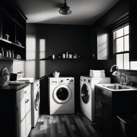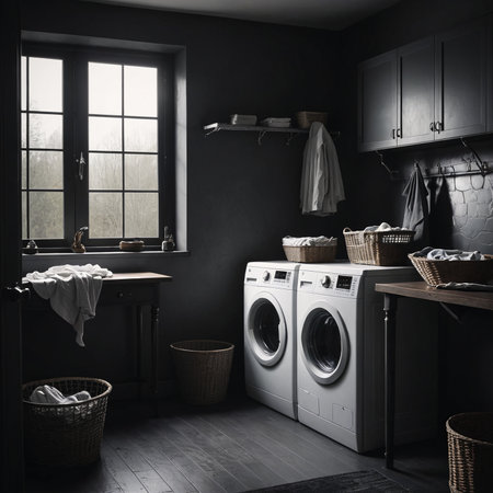 Serene Laundry Room Washer in Dark Moody Atmosphere