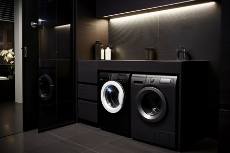 Contemporary laundry room with modern appliances including washer and dryer set, AI Generative.