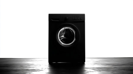 Black washing machine isolated on white background. Laundry concept.