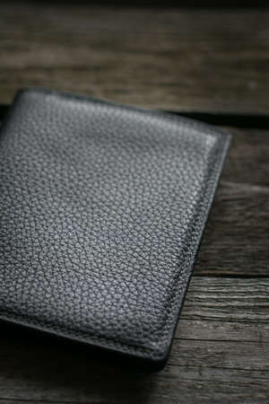 Genuine Brown Leather men's bifold wallet. Selective focus