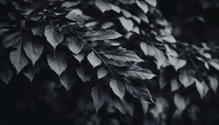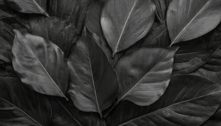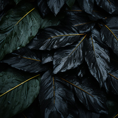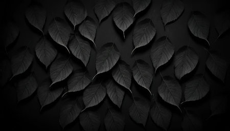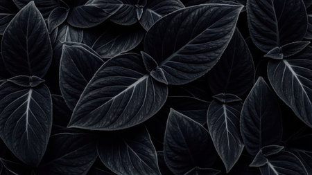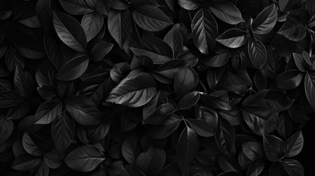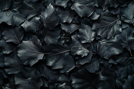 Captivating dark leaves create a textured backdrop, offering an elegant and serene atmosphere for design and nature-themed projects. Perfect for various uses.