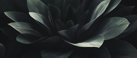 A detailed, dark, and moody close-up of textured black leaves, showcasing intricate patterns and a sense of depth.
