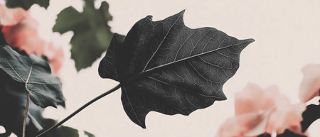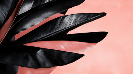 A striking composition featuring exotic black leaves set against a soft coral background, creating a captivating contrast ideal for modern decor and design inspiration.
