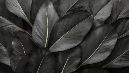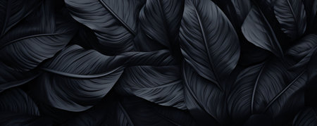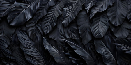 Immerse in the beauty of abstract black leaf textures, offering a sophisticated tropical leaf background in a stunning flat lay style. This dark nature concept inspires modern, artistic, and