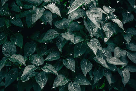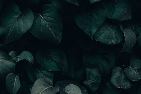 Dark green tropical leaves background – Toned nature shot of some forest greenery – Dramatic foliage decoration