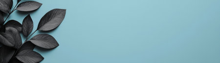 Elegant black leaves against a serene blue background for minimalist aesthetics.