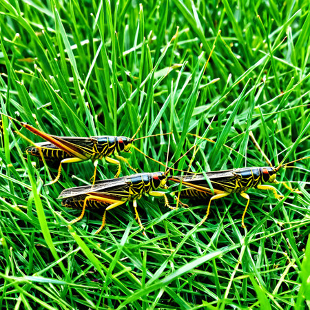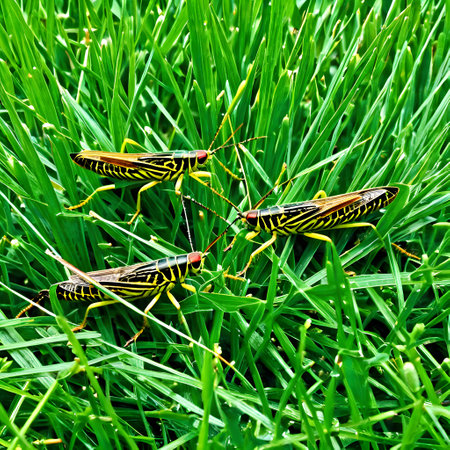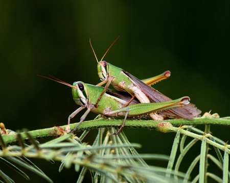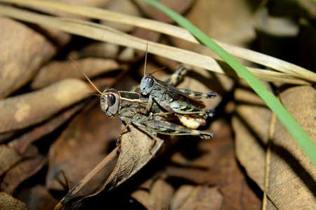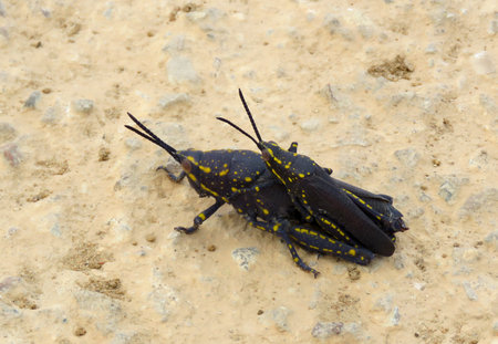 Mating poisonous grasshoppers (lat.- Poekilocerus bufonius) in Arava desert