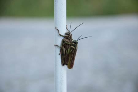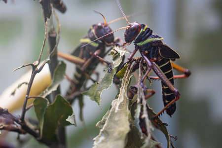 Salvador, Bahia, Brazil - January 17, 2022: locust insect seen in coconut palm straw in Salvador city.