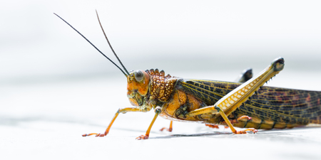 Migratory Locust, Locust, Locusta migratoria. Grasshopper (Locust) isolated on white background. Locust attack in india.