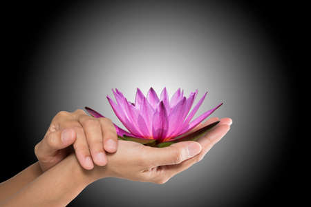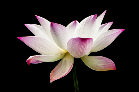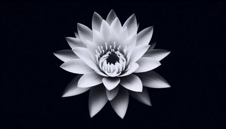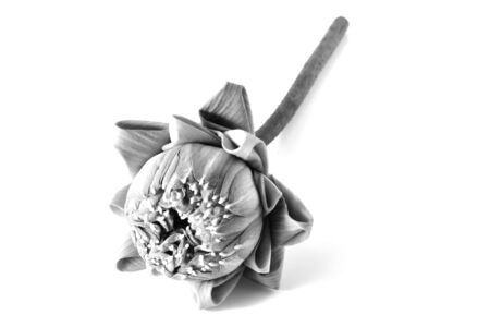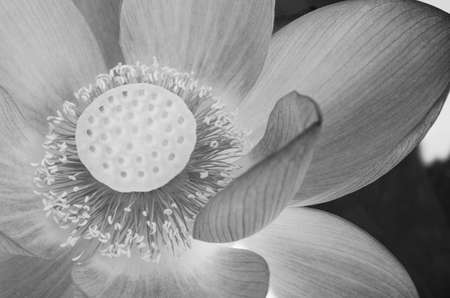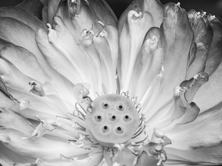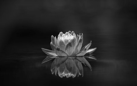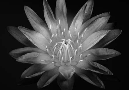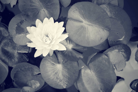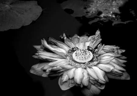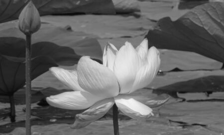 Close-up of lotus flower black and white on the pond at sunrise. For thousands of years, the lotus flower has been admired as a sacred symbol.